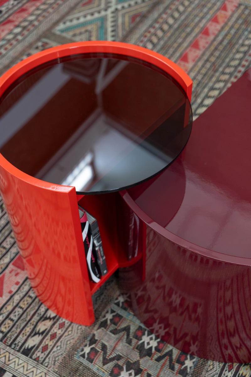 Den C-förmigen Korpus gibt es in zwei verschiedenen Größen – eine schmale höhere Variante und eine breite niedrigere. So eignet sich das Designstück je nach Vorliebe mal als Couchtisch, mal als Nachttisch oder Side Table. Auch mehrteilig als Set zusammengestellt, ergibt LUA ein optisch schönes Bild.