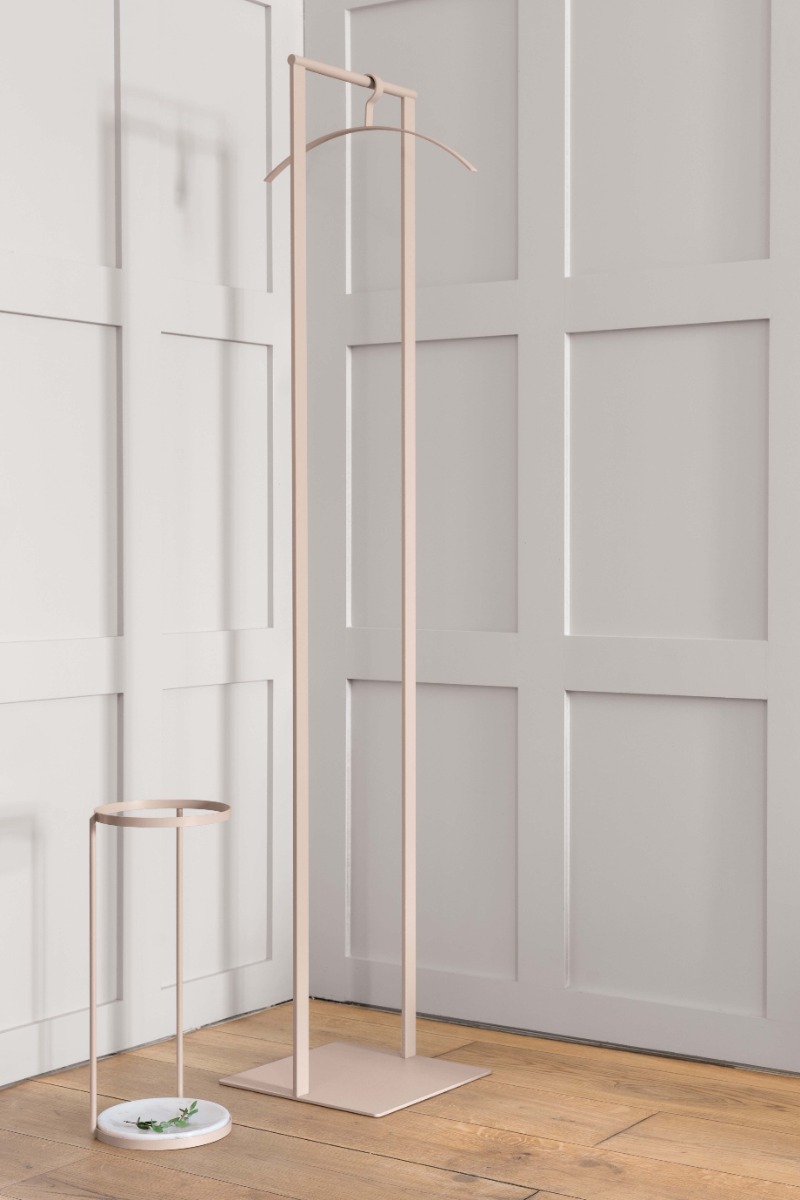 The PONTI umbrella stand combines functional excellence with luxurious looks. Powder-coated in black or rosewood, the frame consists of two steel-strip rings connected by vertical, round tubing. The integrated drip tray in Nero Marquina or Bianco Carrara marble matches the metal in colour while offering the perfect contrast of materials. PONTI is an interior accessory of timeless elegance. A favourite.